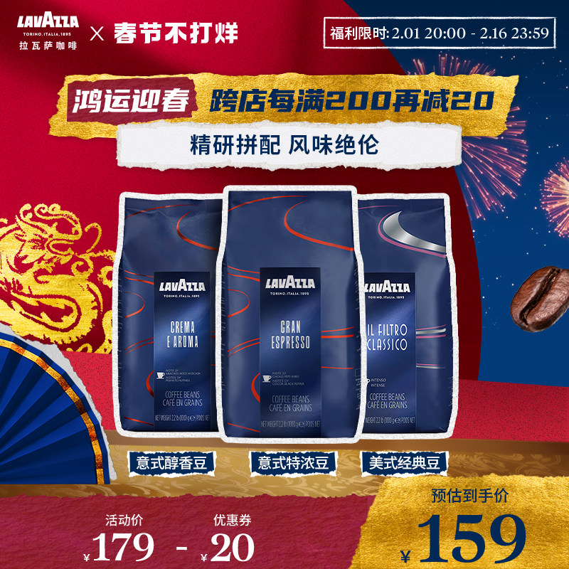 【自营】意大利Lavazza拉瓦萨进口意式浓缩金牌咖啡豆中度烘焙1kg