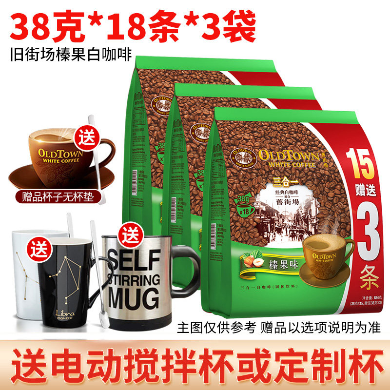 马来西亚进口旧街场白咖啡速溶三合一经典原味榛果味