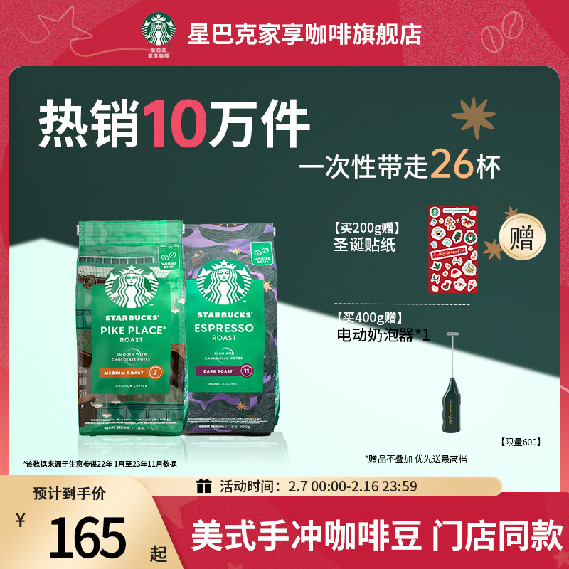 星巴克咖啡豆深度烘焙美式200g进口阿拉比卡豆意式手磨黑咖啡豆粉