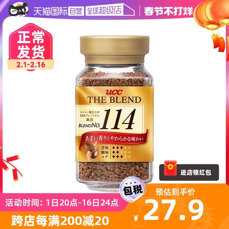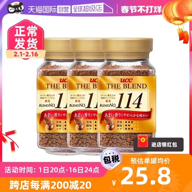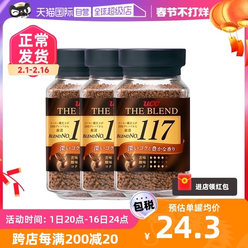 【自营】悠诗诗ucc117黑咖啡粉无糖冻干纯咖啡速溶进口正品3瓶装