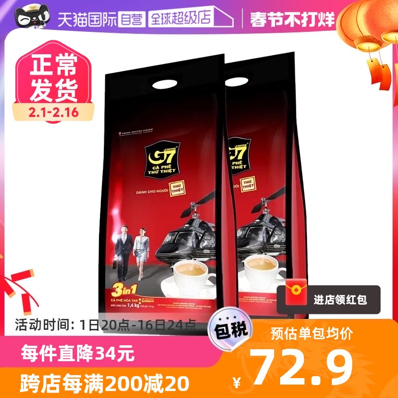【自营】越南进口G7咖啡1600g提神防困三合一速溶咖啡粉100条*16g