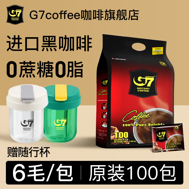 G7旗舰店美式纯黑咖啡粉速溶无蔗糖0脂燃减正品提神越南进口100包