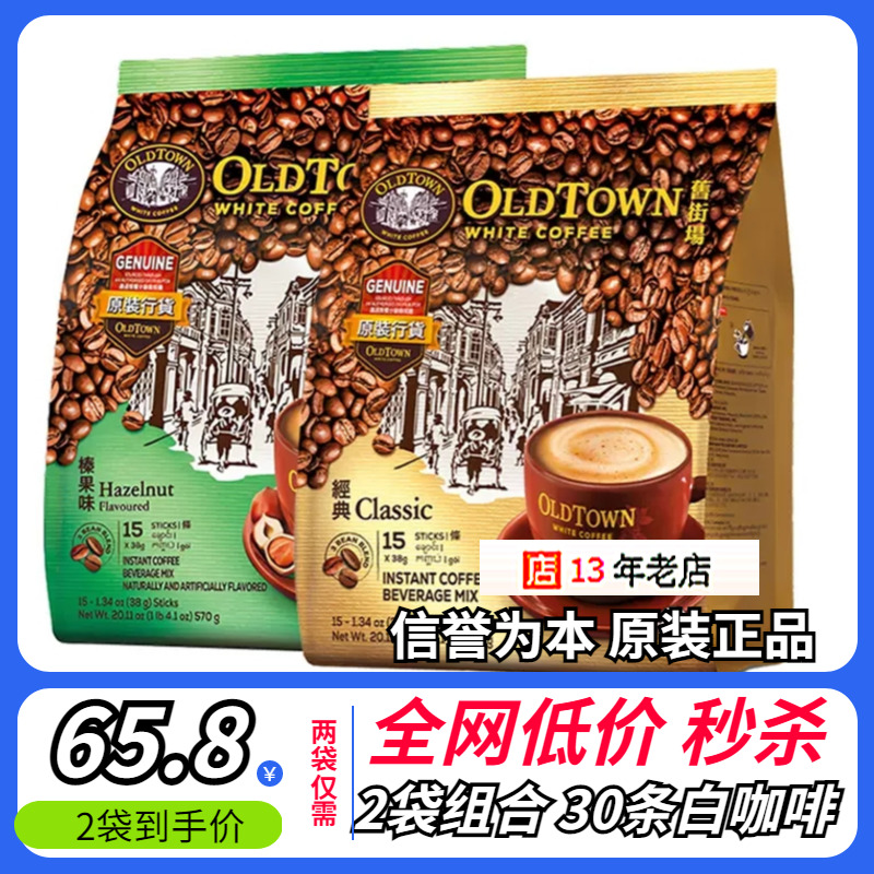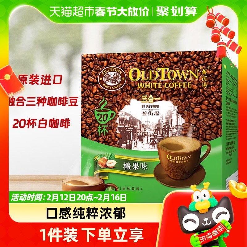 【自营】马来西亚进口咖啡粉OLDTOWN 旧街场榛果白咖啡速溶三合一