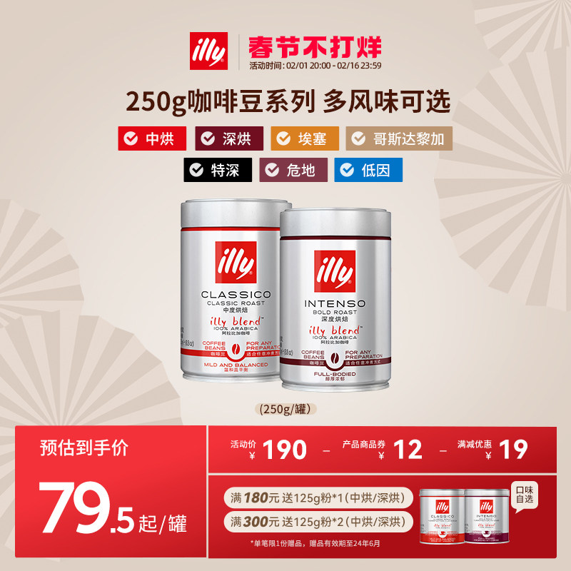 illy意利咖啡粉豆 意大利进口手冲美式黑咖啡中度/深度烘焙罐装