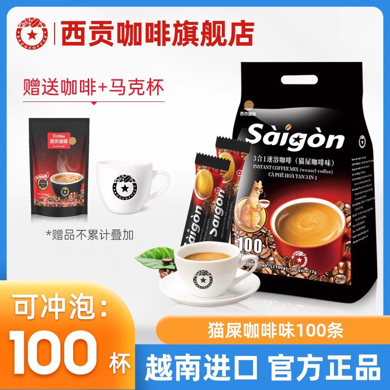 越南进口猫屎咖啡味100条三合一速溶咖啡饮品西贡官方旗舰店
