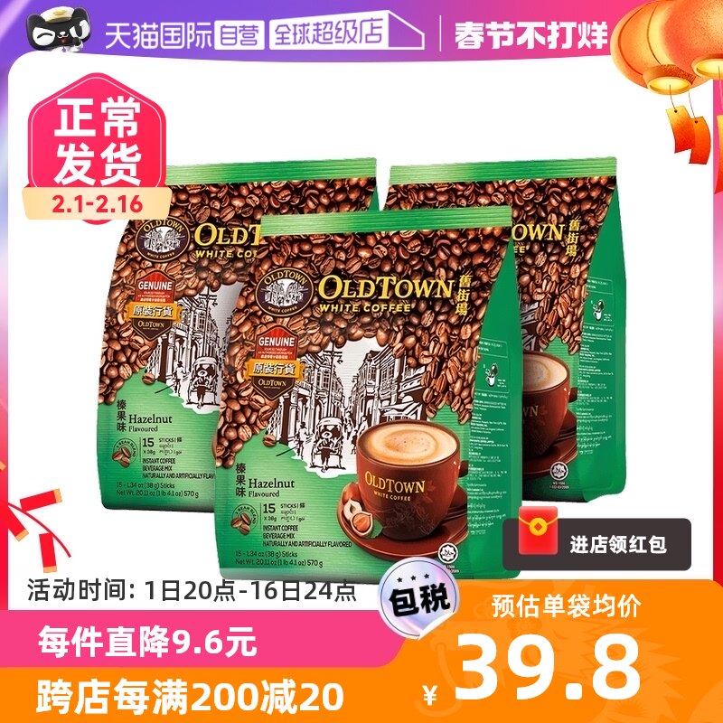 【自营】马来西亚进口咖啡粉OLDTOWN旧街场榛果白咖啡速溶条装