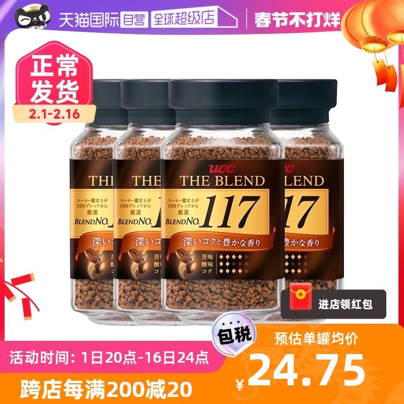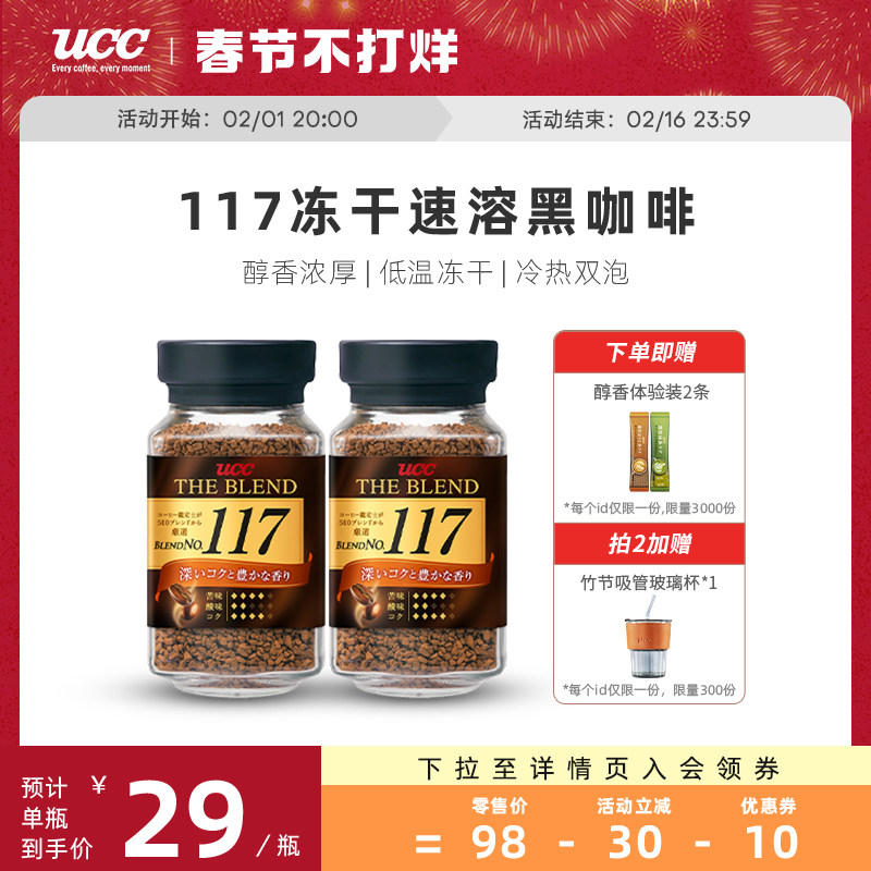 UCC悠诗诗117冻干速溶纯黑咖啡粉90g 2瓶装日本进口咖啡