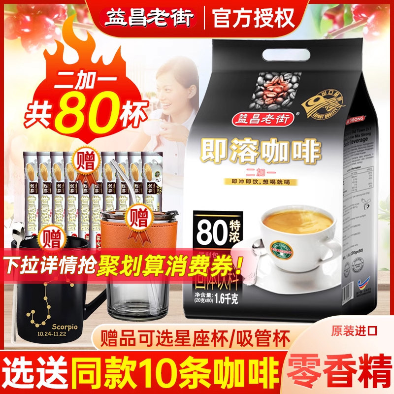原装马来西亚进口益昌老街3合1特浓速溶原味咖啡粉800g40条装提神
