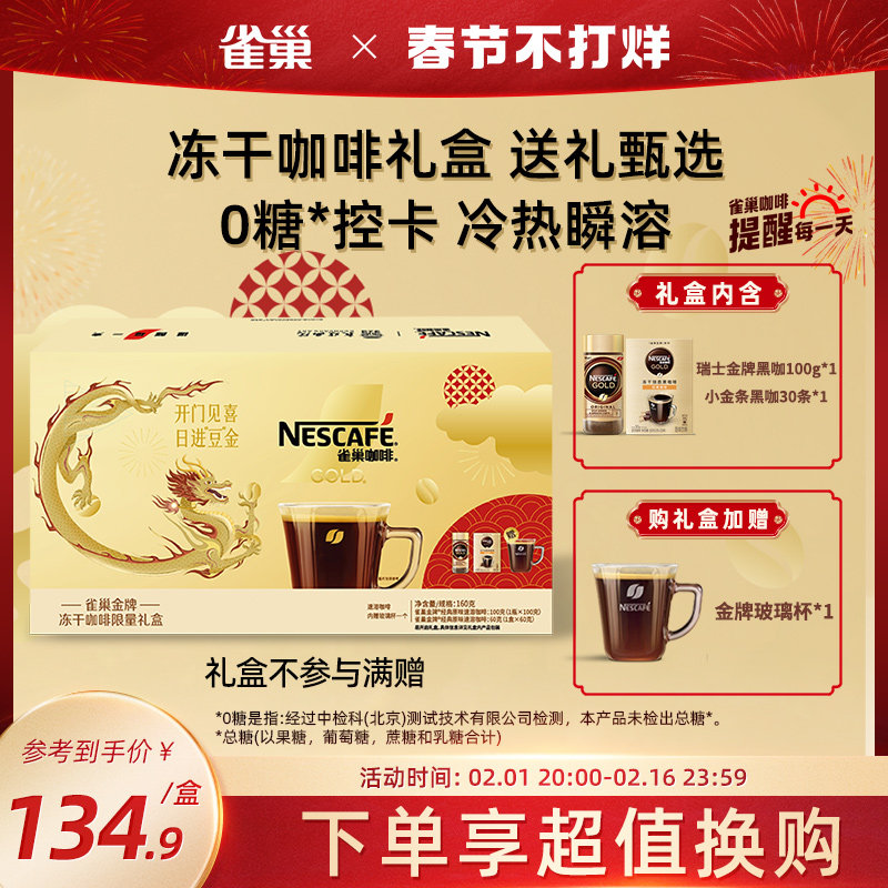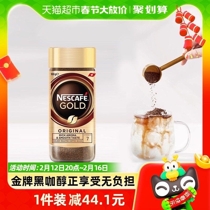 雀巢金牌瑞士进口冻干咖啡美式无糖速溶黑咖啡粉100g官方旗舰店