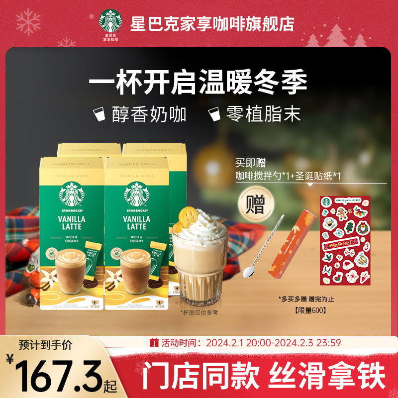 星巴克咖啡粉官方进口三合一速溶咖啡4盒卡布奇诺咖啡零植脂末