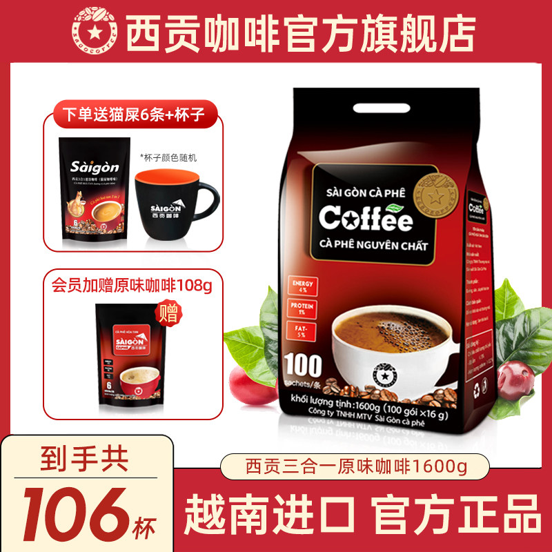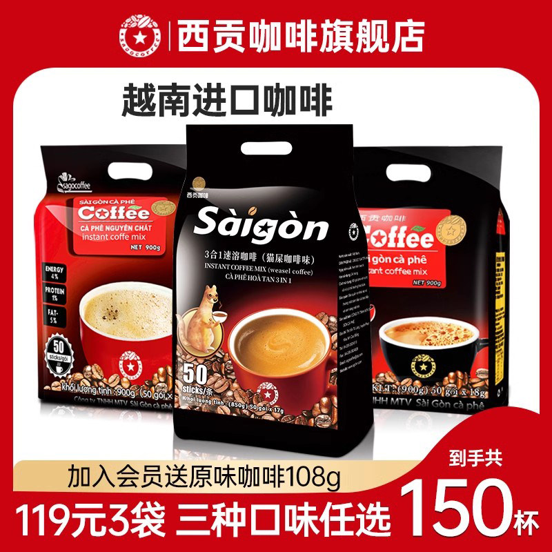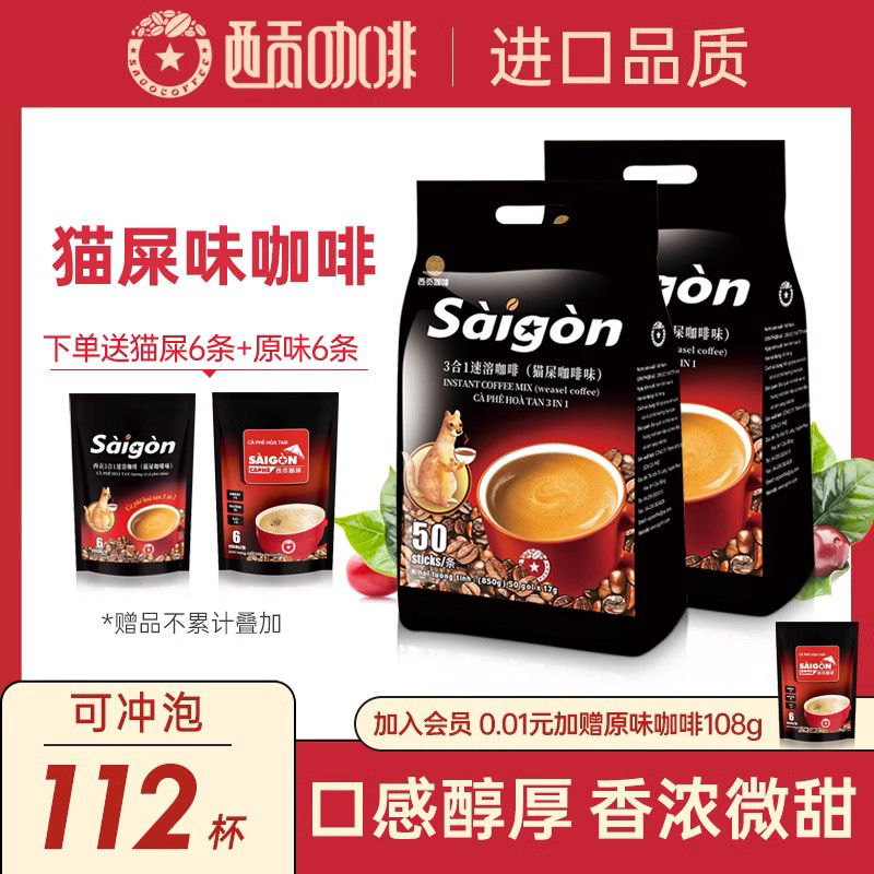 西贡旗舰店越南进口速溶咖啡条装三合一原味炭烧猫屎特浓防困咖啡