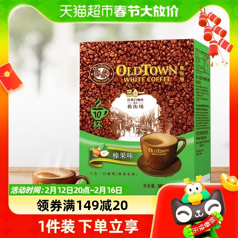 【进口】马来西亚旧街场白咖啡榛果味10条380g3合1榛果速溶咖啡