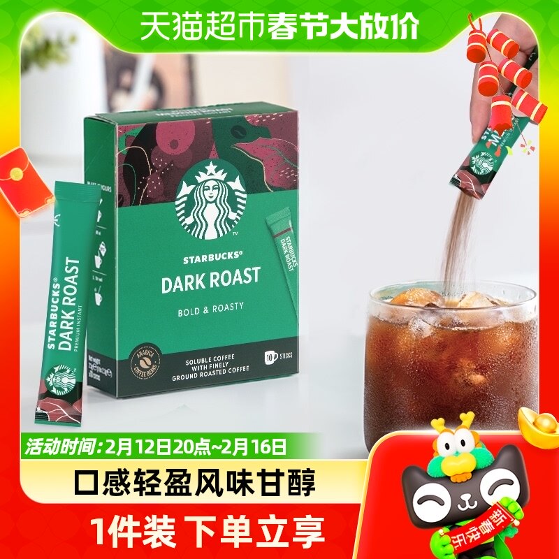 星巴克进口美式深度烘焙速溶即溶黑咖啡2.3g*10袋办公提神健身