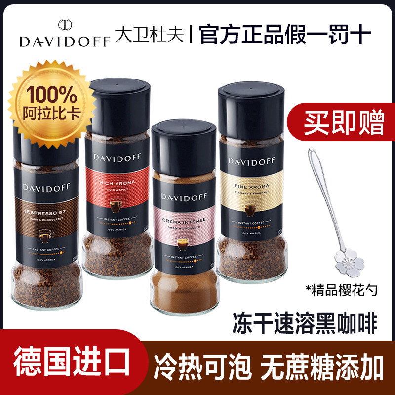 德国进口Davidoff大卫杜夫黑咖啡100g冻干冷萃无蔗糖添加速溶咖啡