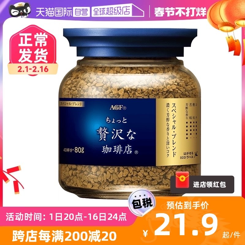【自营】日本进口agf咖啡美式黑咖啡无蔗糖速溶冻干咖啡粉80g/瓶
