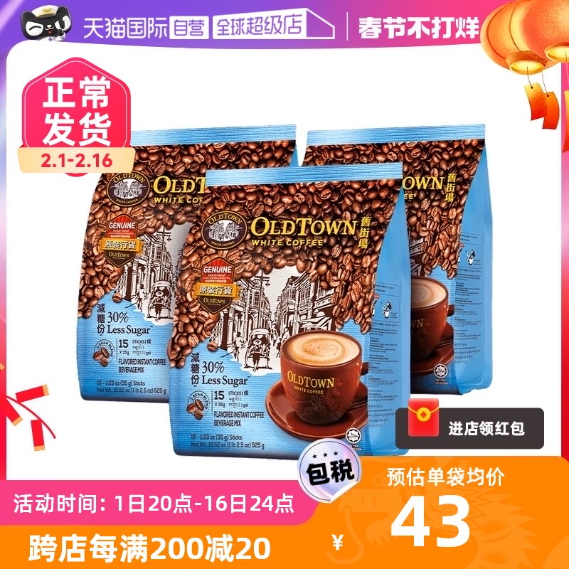 进口马来西亚老街OLDTOWN旧街场白咖啡三合一低糖少糖速溶袋装