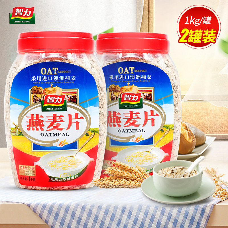 智力 澳洲进口原料纯燕麦片1000g*2桶灌装 即食原味营养早餐代餐