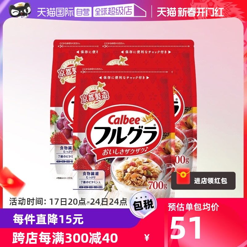 【自营】日本进口Calbee卡乐比水果燕麦片早餐冲饮谷物原味700g*3