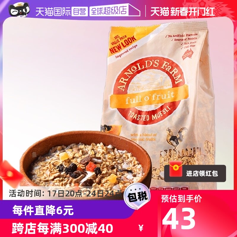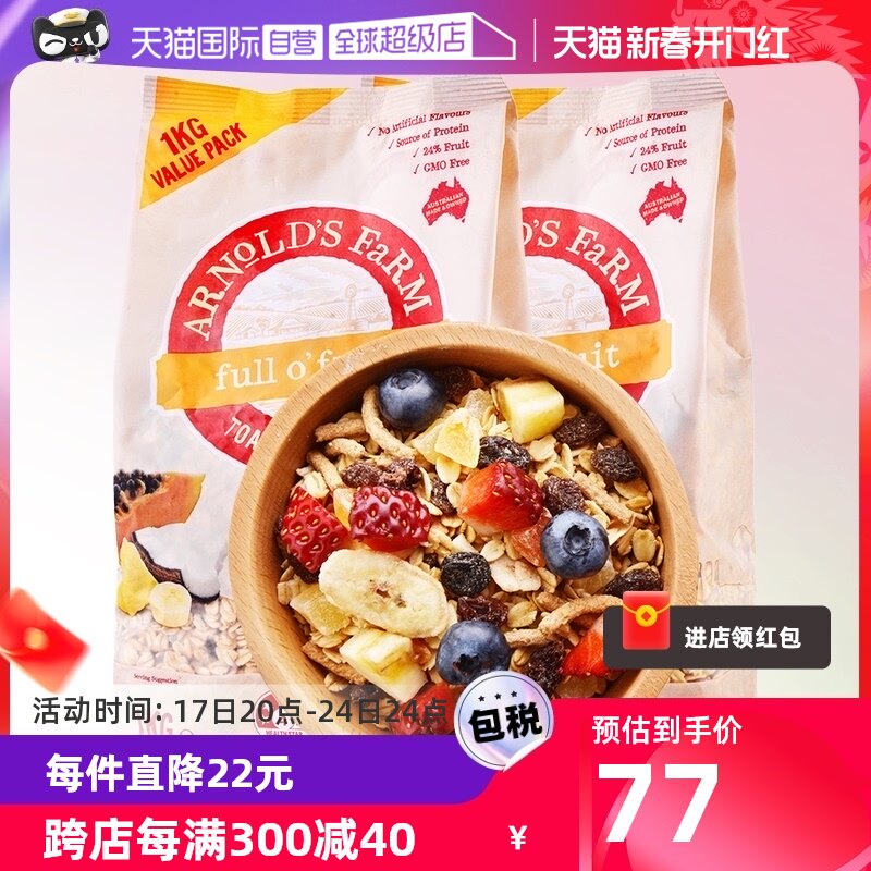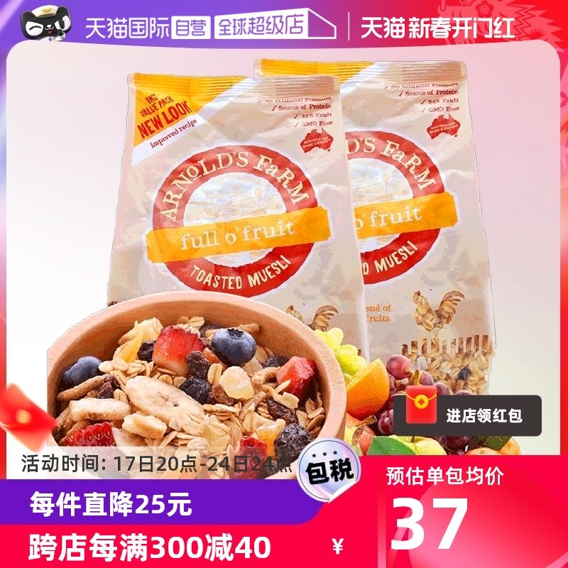 澳洲进口 阿诺农场即食代餐水果麦片1KG*2进口澳洲燕麦片谷物早餐