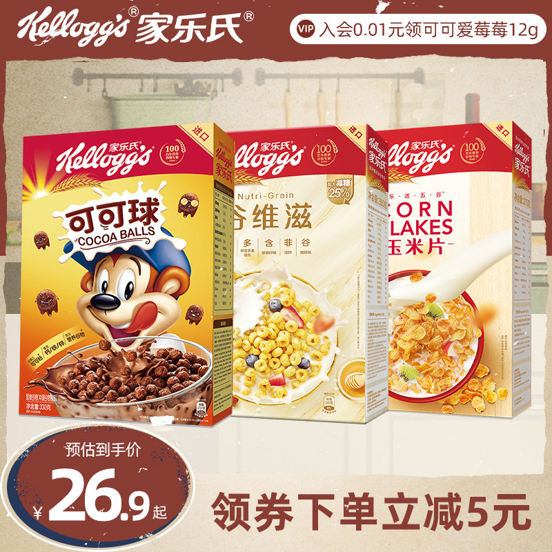 家乐氏进口儿童麦片早餐巧克力可可球谷物圈营养燕麦片即食冲饮
