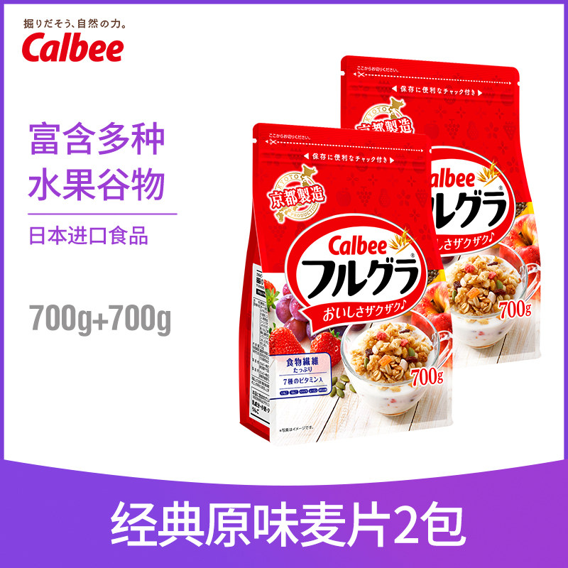 【自营】日本进口Calbee卡乐比水果燕麦片早餐冲饮谷物原味700g*2