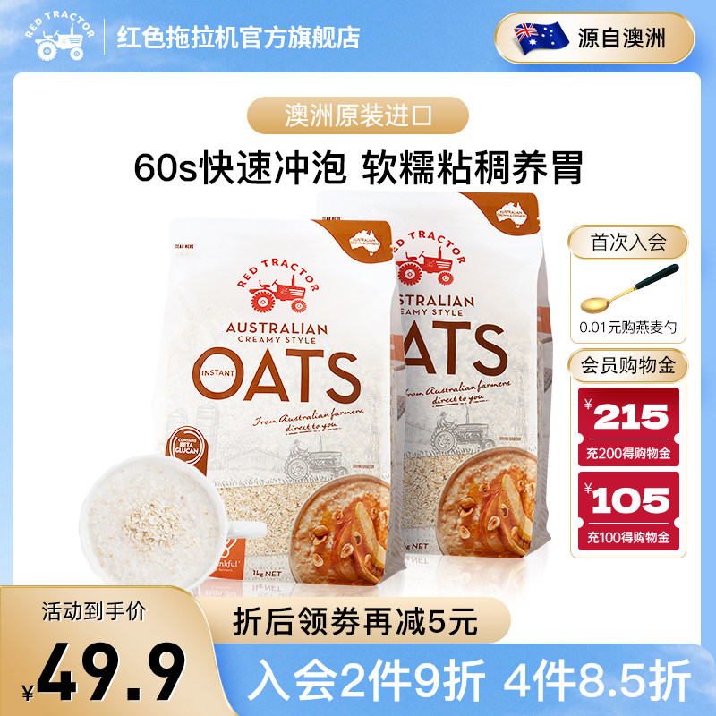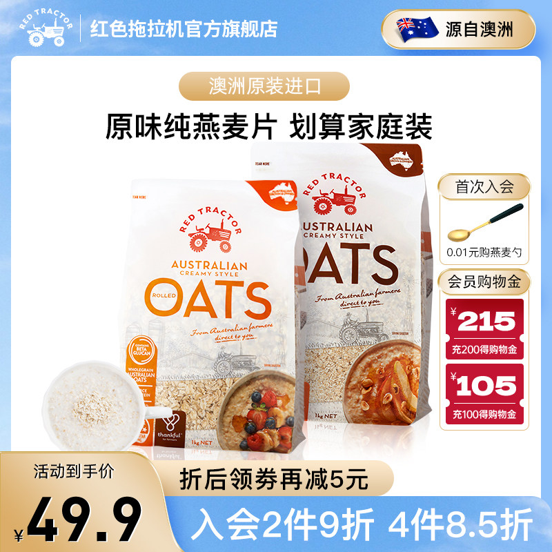 红色拖拉机澳洲进口原粒燕麦片早餐即食冲饮原味麦片燕麦健身1kg