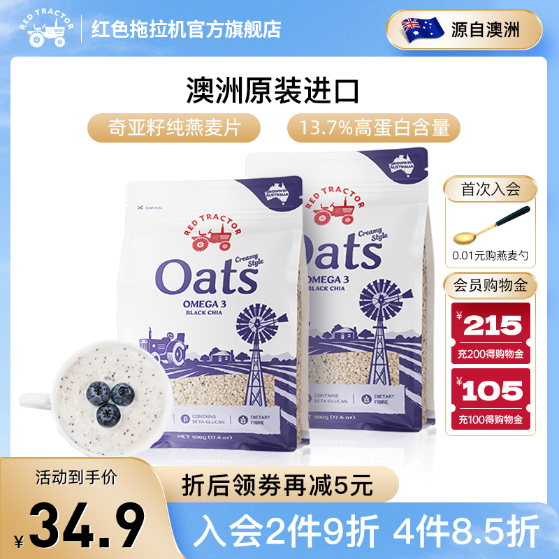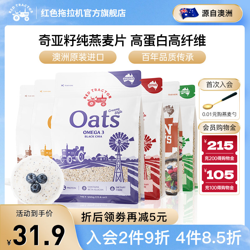 红色拖拉机澳洲进口奇亚籽纯燕麦片早餐即食冲饮原味麦片燕麦500g