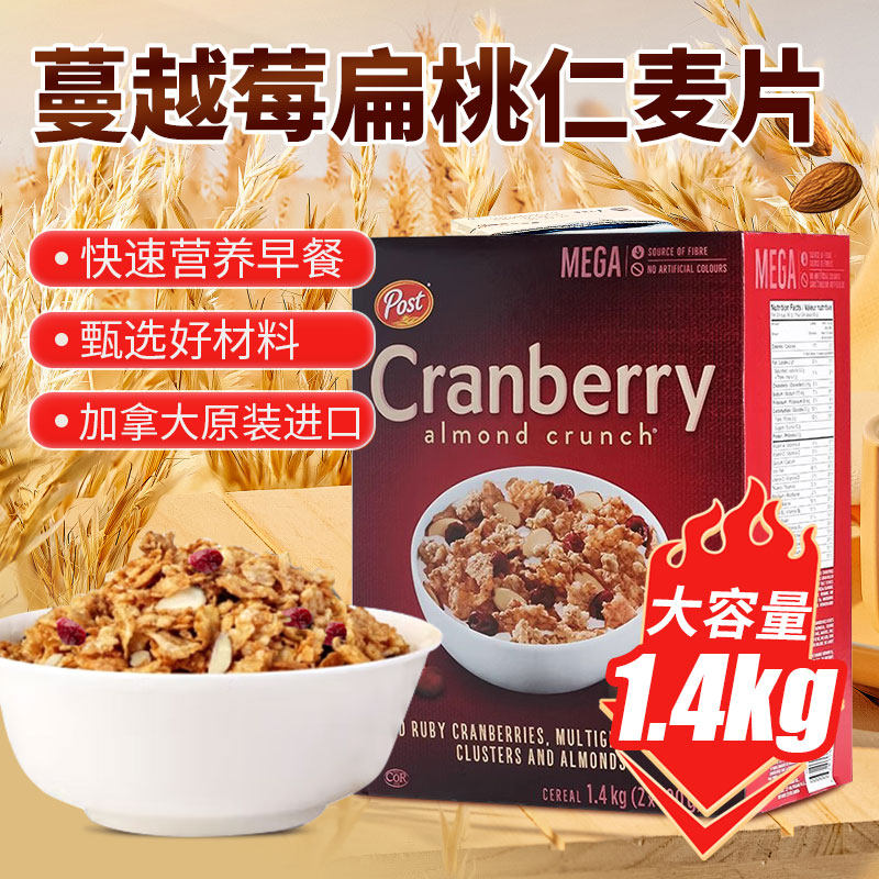 进口Post宝氏蔓越莓扁桃仁麦片冲饮即食水果混合麦片代餐营养早餐
