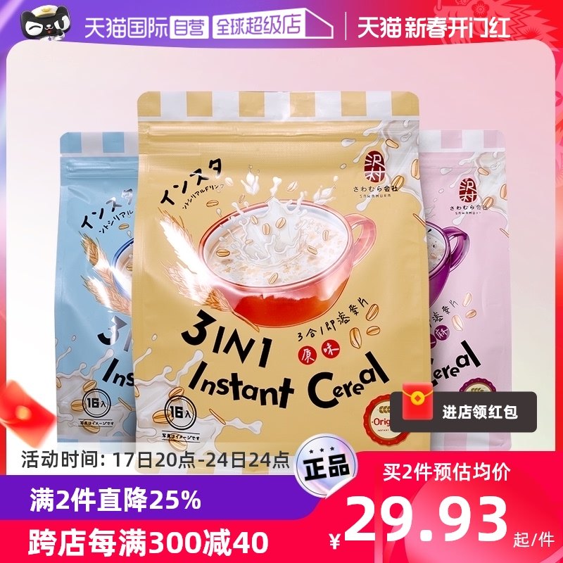 【自营】新加坡进口沢村会社三合一原味即溶燕麦片黑芝麻冲饮早餐