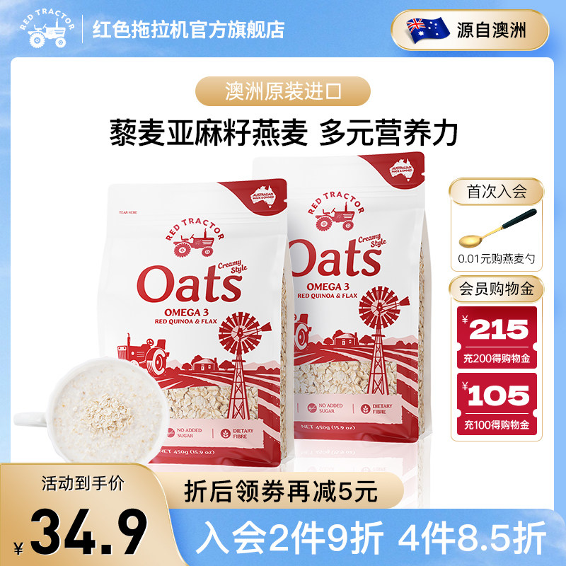 红色拖拉机澳洲进口亚麻籽藜麦高蛋白高纤维燕麦片450g代早餐即食