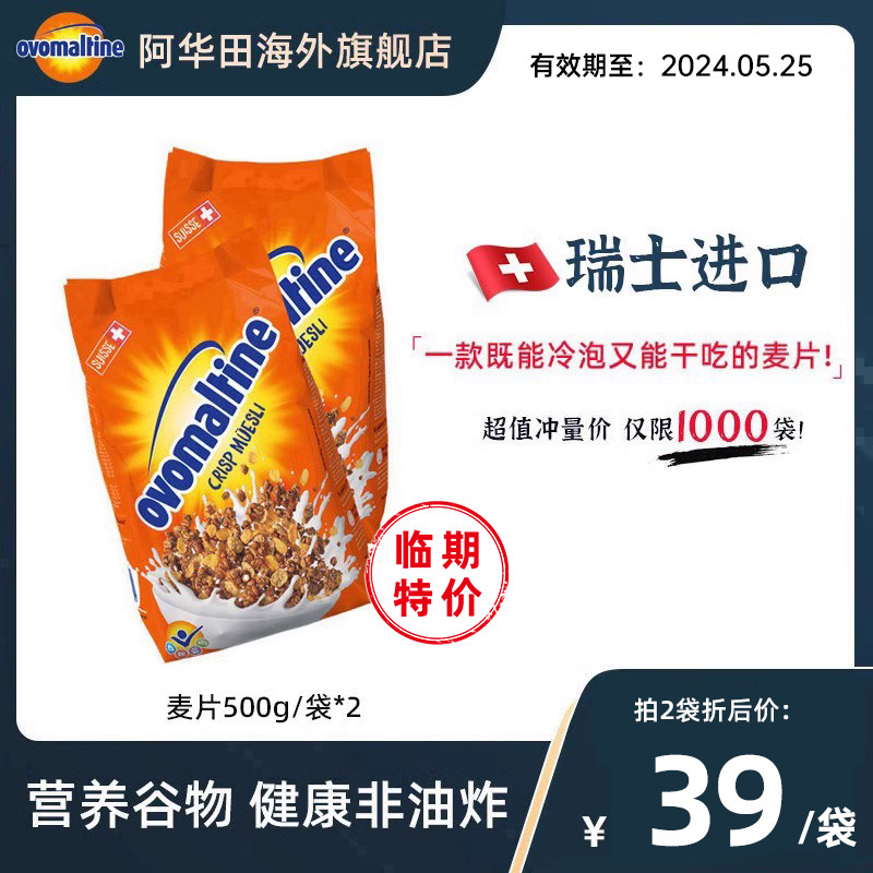 阿华田ovomaltine瑞士进口可可麦芽牛奶冲泡干吃早餐燕麦片500g*2