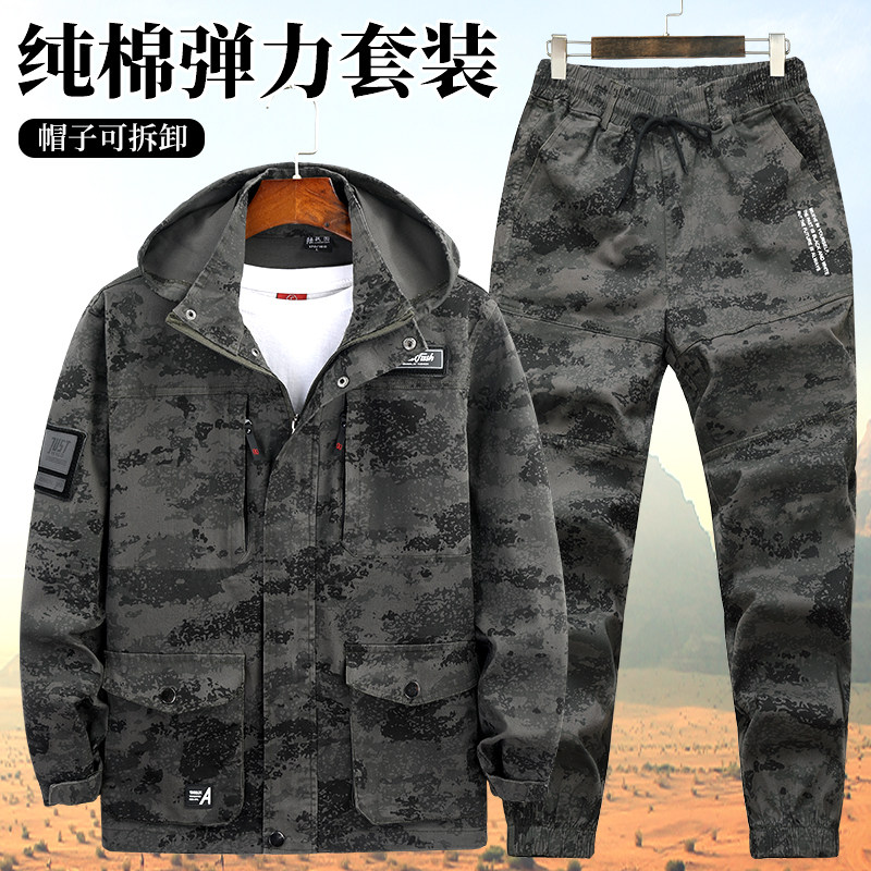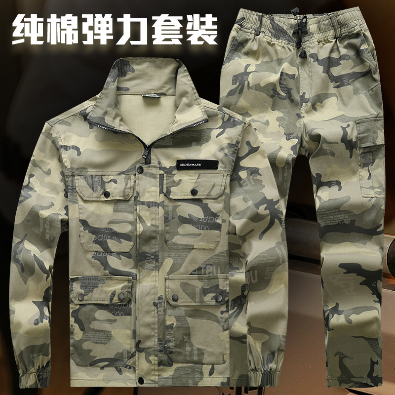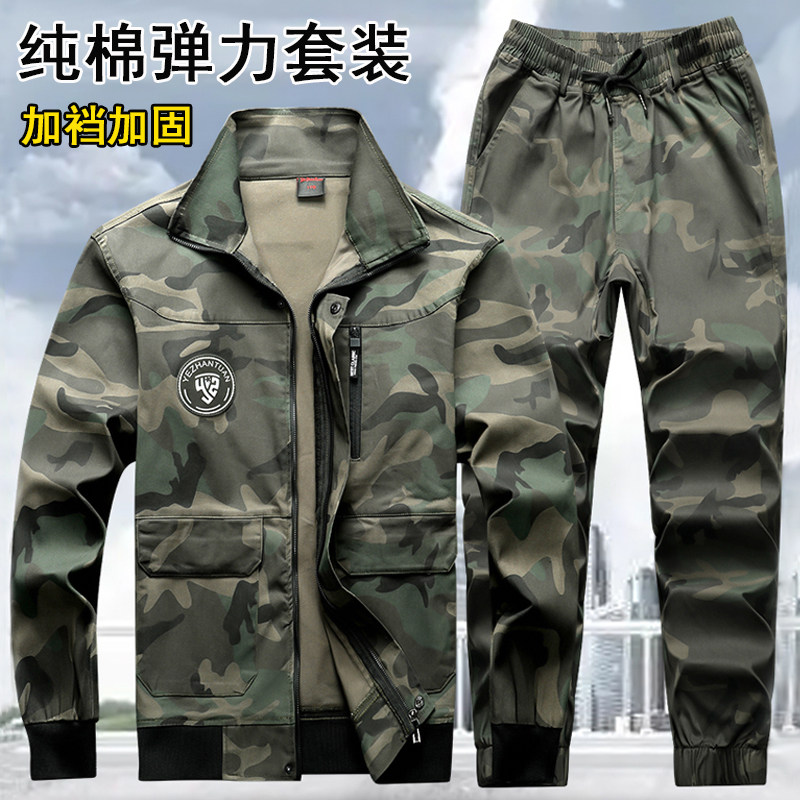工作服套装男春秋纯棉弹力加厚耐磨焊工迷彩劳保服上班工地工装