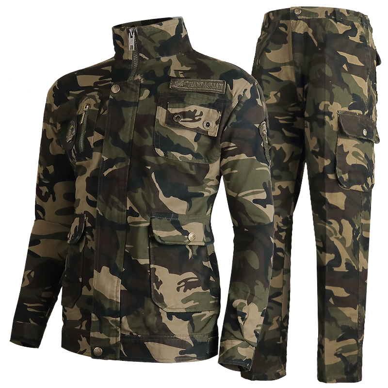 春秋迷彩服套装男纯棉加厚加固军迷野战服耐磨训作劳保工作服大码