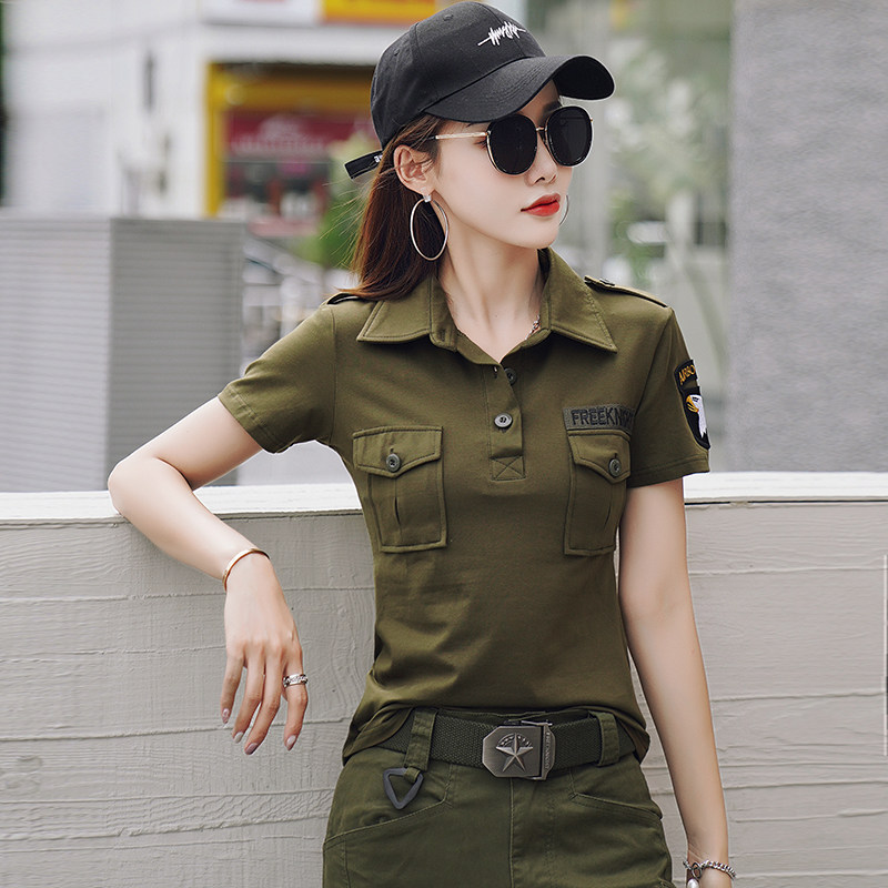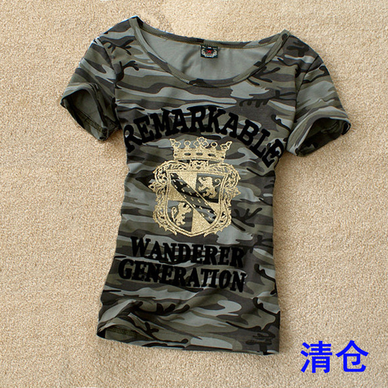 夏装清仓修身迷彩服纯棉吸汗圆领T恤女大码打底衫显瘦运动军训服