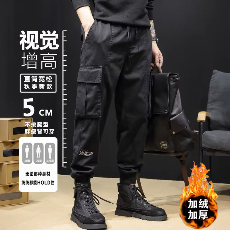 秋冬季加绒工装裤男耐磨加厚机能风伐木裤男生迷彩复古休闲裤学生