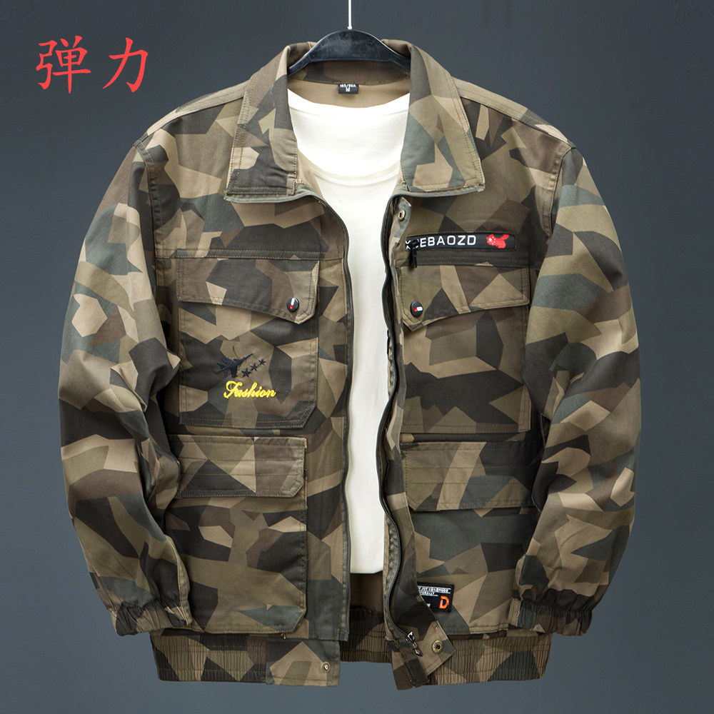 春秋工作服纯棉弹力耐磨防烫电焊迷彩服套装男外套工地干活劳保服