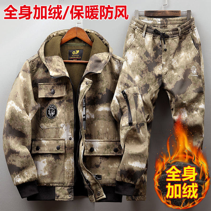 冬季加绒迷彩服套装男防水加厚劳保工作服装男士工装外套防寒保暖
