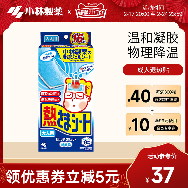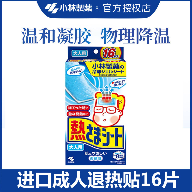 日本小林降温退烧贴成人16片退热贴降温冰冰贴冰凉贴冰宝贴清凉贴