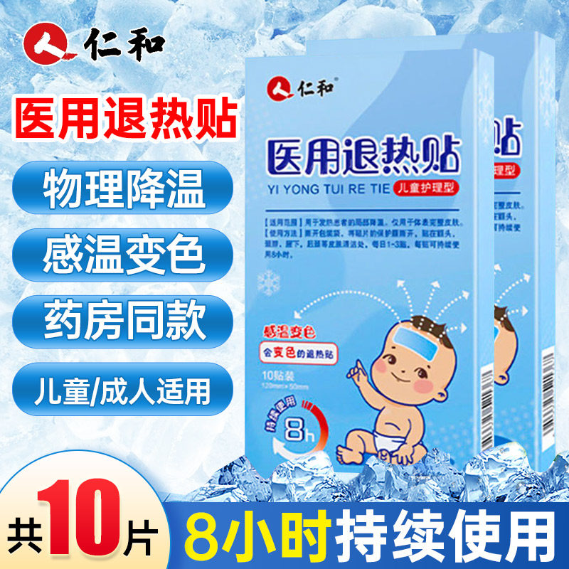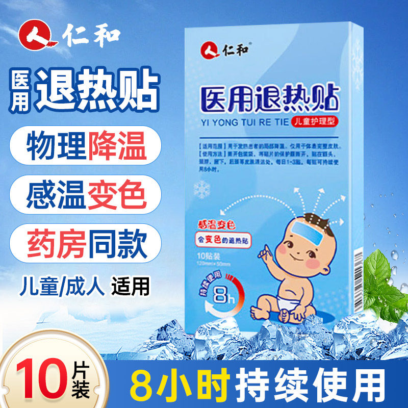 仁和退热贴医用变色款婴幼儿宝宝儿童小儿小孩物理降温退烧贴10贴