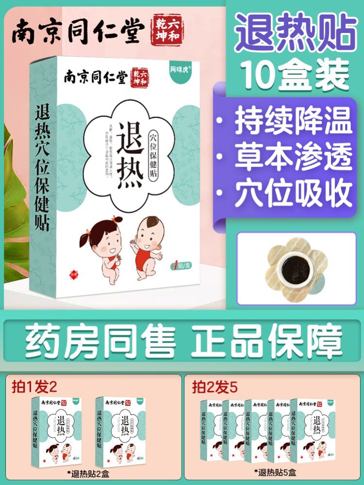 南京同仁堂退热贴儿童退烧婴幼小儿散热感冒穴位贴宝宝草本肚脐贴