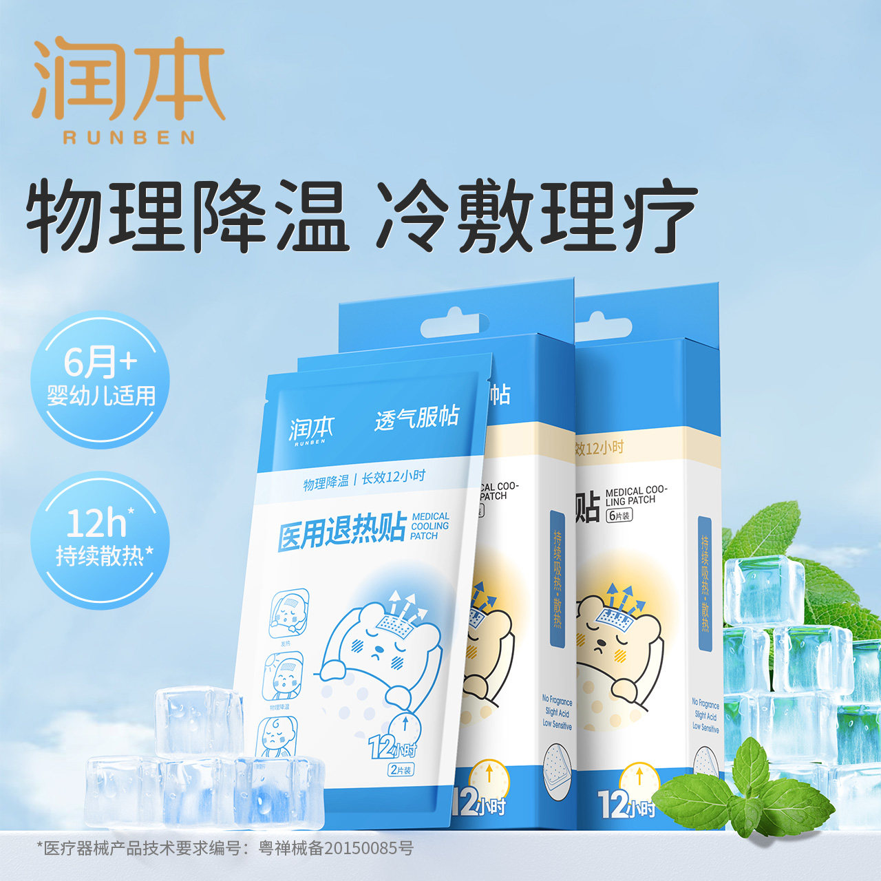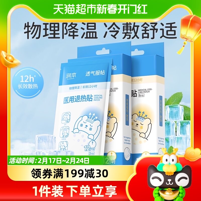 润本婴儿退热贴物理降温小儿散热冰宝帖儿童宝宝成人护脑退烧贴