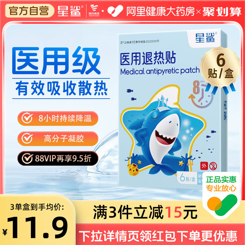 星鲨医用退热贴6贴/盒感冒发烧物理降温幼儿儿童成人散热退烧贴