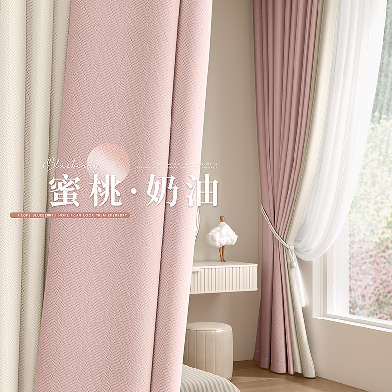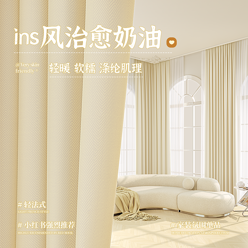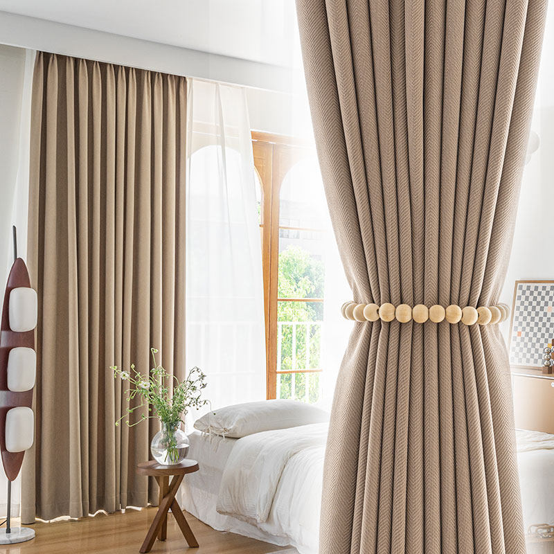 雪尼尔人字纹高遮光卧室窗帘布奶咖色现代简约ins风2022新款定制