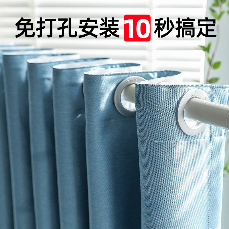 简易免打孔安装全遮光布窗帘遮阳布挡光卧室挂钩式隔热防晒不透光