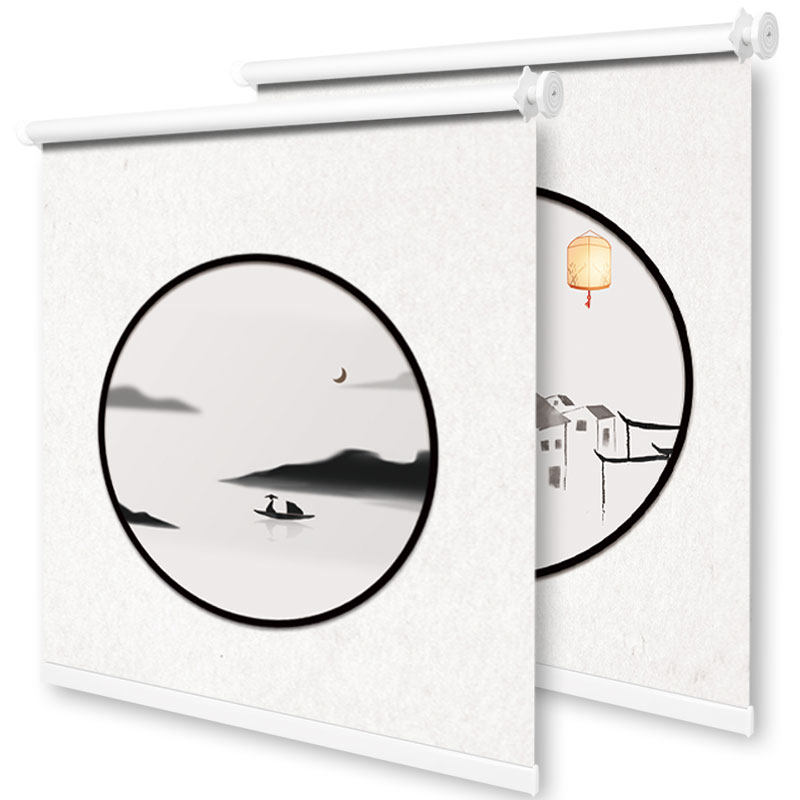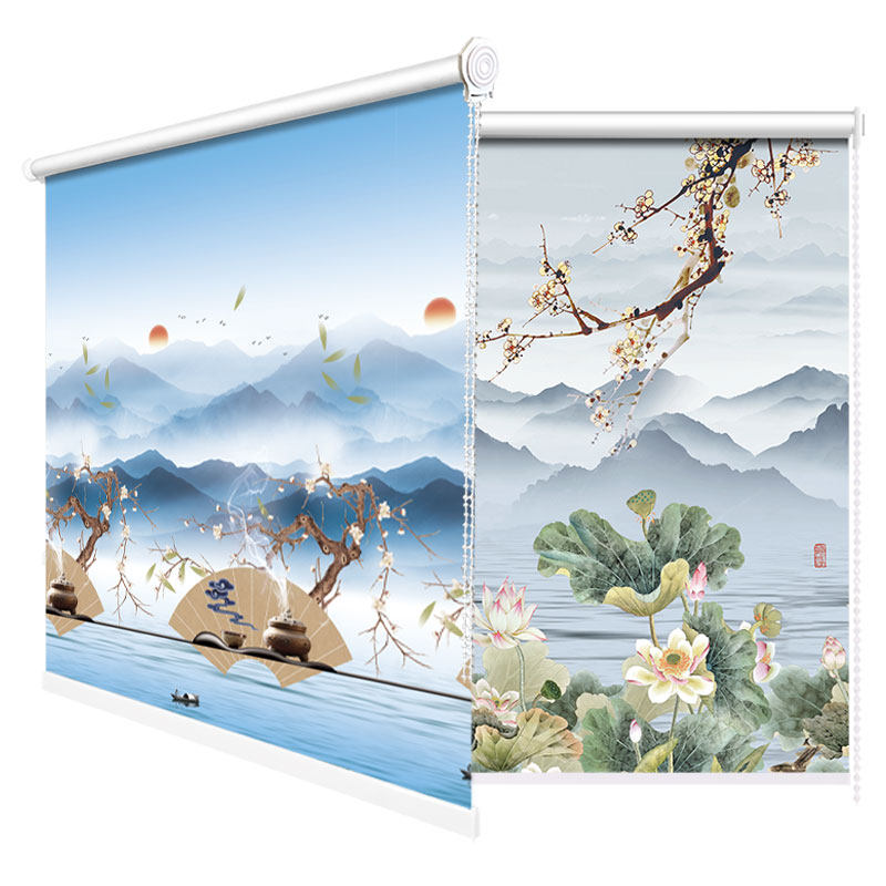 水墨风印花卷帘窗帘挂帘免打孔窗帘居家办公中式隔断遮光防水卷帘