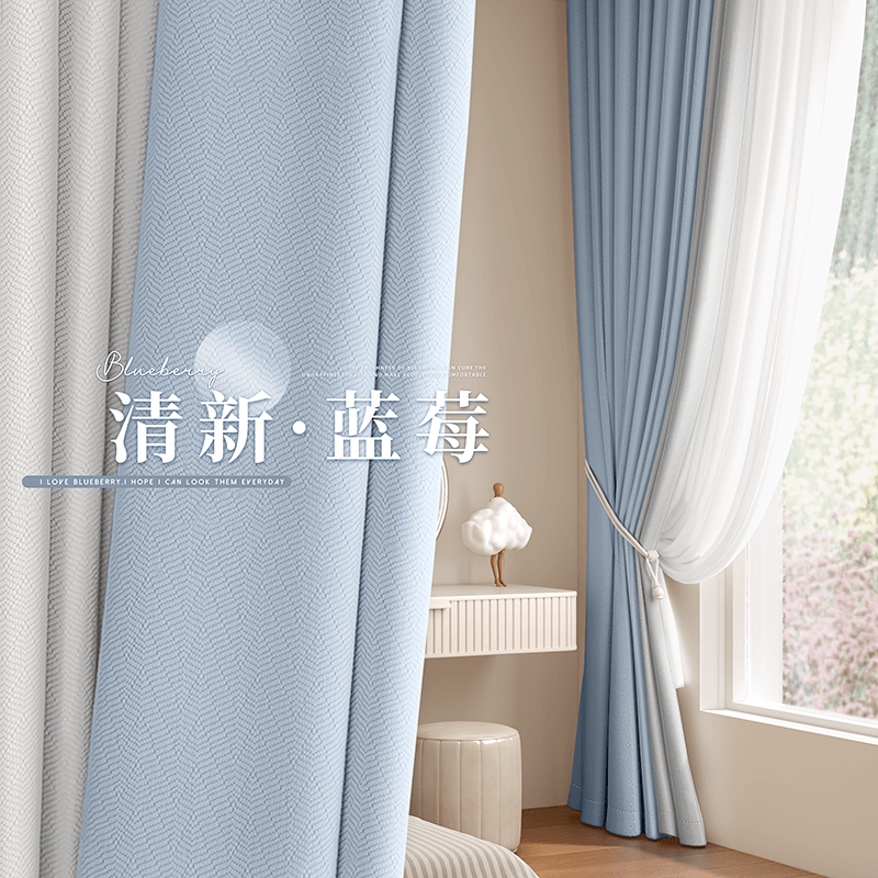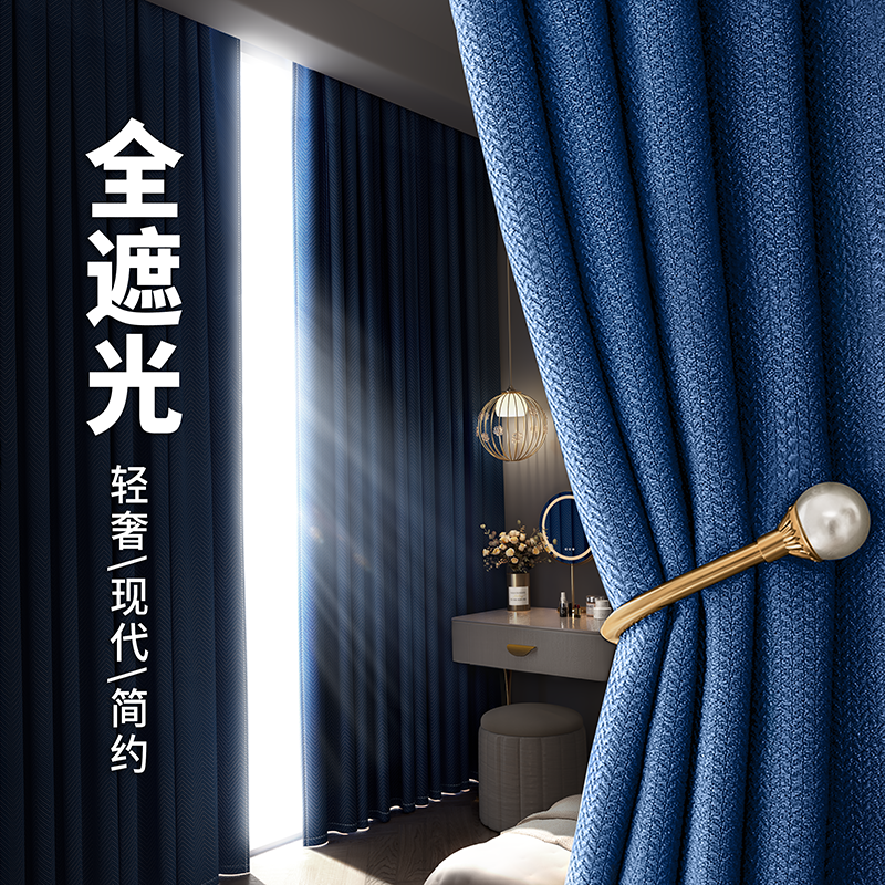 全遮光窗帘布料加厚成品定制遮阳防晒隔热落地飘卧室客厅简约现代