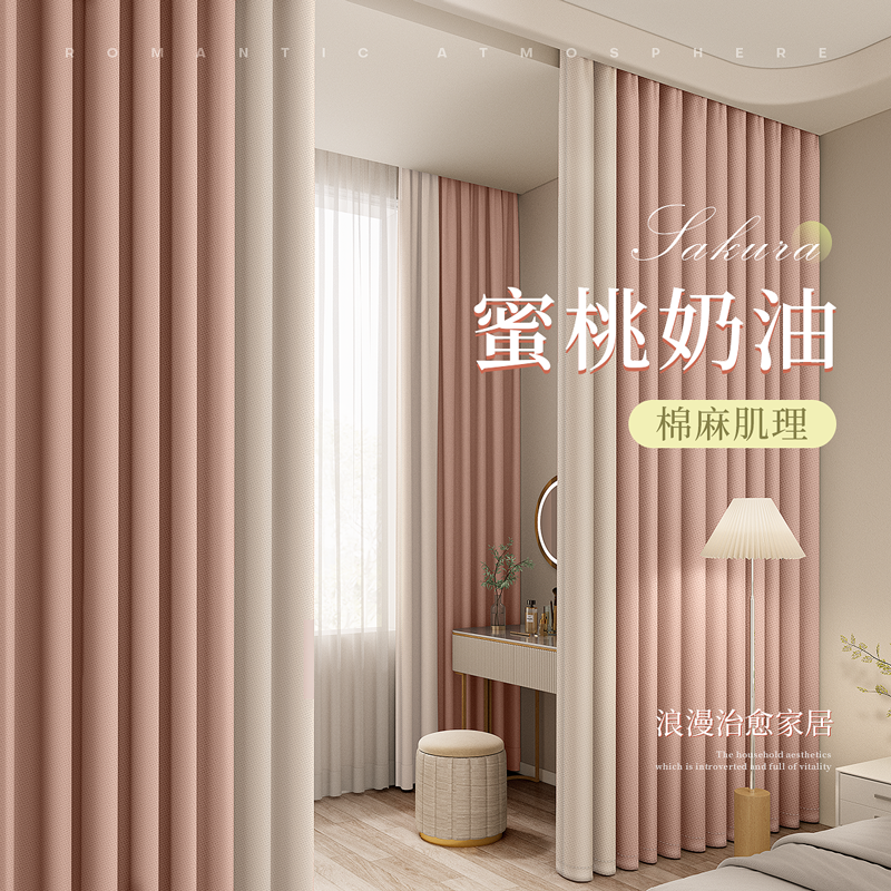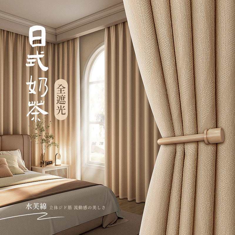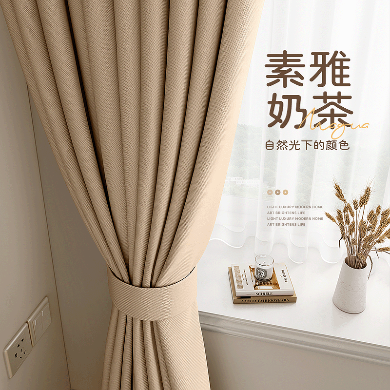 主卧奶茶色窗帘全遮光飘窗2023新款纯色加厚棉麻卧室现代法式简约