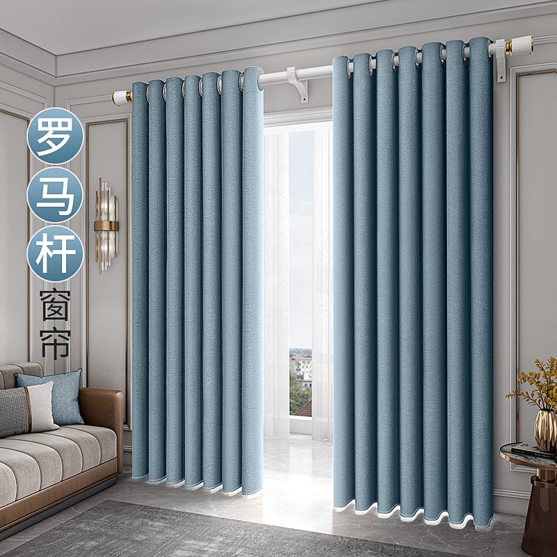 罗马杆窗帘一整套2023年新款卧室遮光打孔客厅罗马窗帘免打孔安装