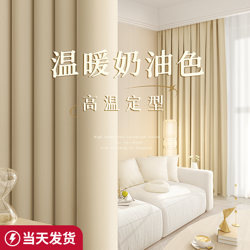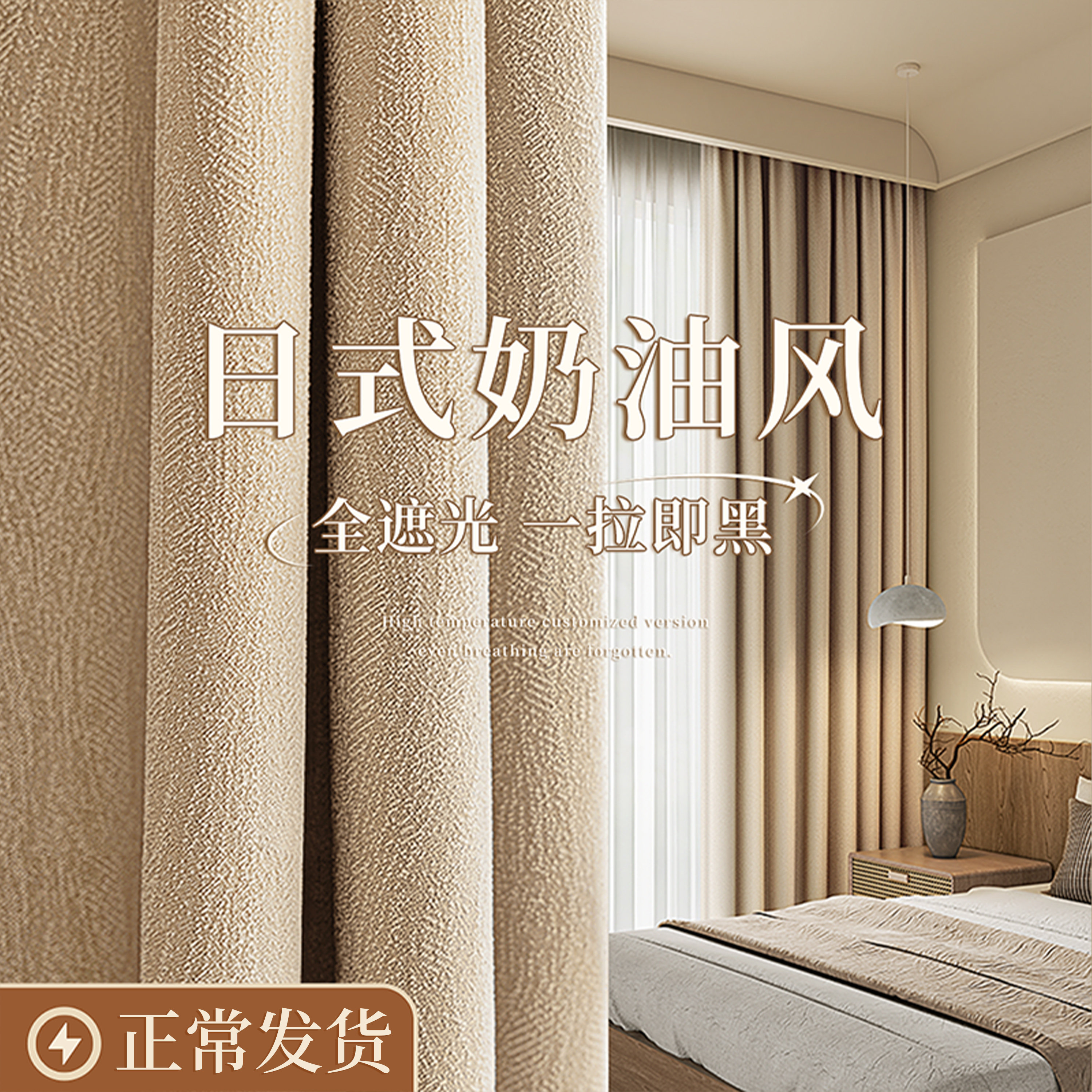 奶油风窗帘遮光客厅2022新款2023卧室免打孔安装法式轻奢现代简约