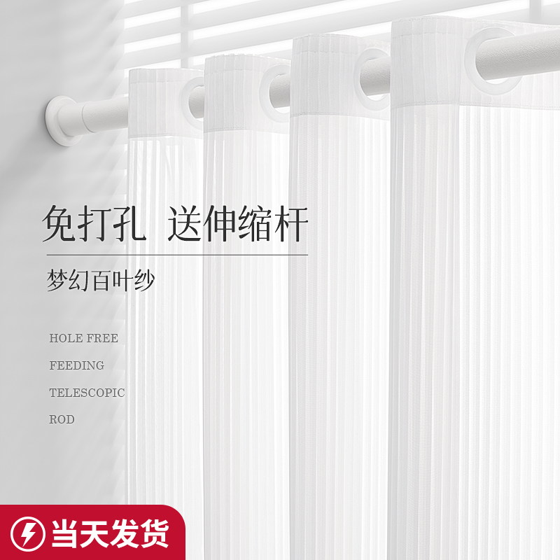 透光不透人纱窗帘免打孔安装伸缩杆一整套隔断帘遮光新款白纱帘子